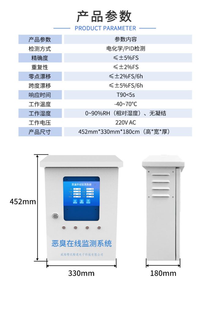 - 惡臭氣體監(jiān)測系統(tǒng)是基于電化學(xué)和PID檢測技術(shù)而研發(fā)的大氣環(huán)境監(jiān)測系統(tǒng)。惡臭氣體監(jiān)測系統(tǒng)可實時監(jiān)測引發(fā)惡臭物質(zhì)及有害物質(zhì)場所的臭氣濃度,可監(jiān)測氨氣、硫化氫 、三甲胺 、甲硫醚、二硫化碳、苯乙烯 、二甲二硫醚 、甲硫醇等惡臭氣體濃度,并具有超標(biāo)報警和聯(lián)網(wǎng)預(yù)警功能。該臭氣檢測儀廣泛應(yīng)用于公廁、化工廠、肥料廠、養(yǎng)殖場、化工園區(qū)、垃圾站等場所。
