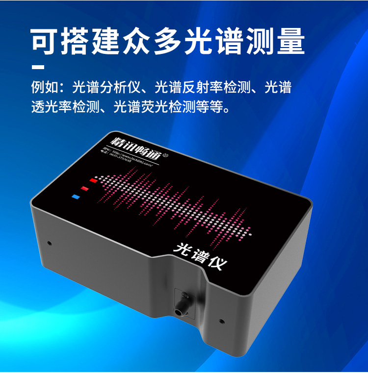 光譜儀是精訊暢通自主研發(fā)的用于測(cè)量吸光度、透射率、反射率、輻照度、顏色和熒光的分析儀器。拉曼光譜分析儀在可用范圍從200到900nm,可以為根據(jù)不同波長(zhǎng)范圍的應(yīng)用預(yù)先配置,也可以由用戶根據(jù)自身需求提出配置要求,以保證在每個(gè)應(yīng)用中獲得高精度性能。光譜儀可廣泛應(yīng)用于DOAS、氣體監(jiān)測(cè)分析、LED測(cè)量、發(fā)射光譜測(cè)量、紫外/可 見吸收光譜測(cè)量等等。
