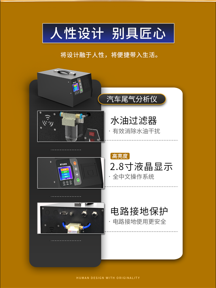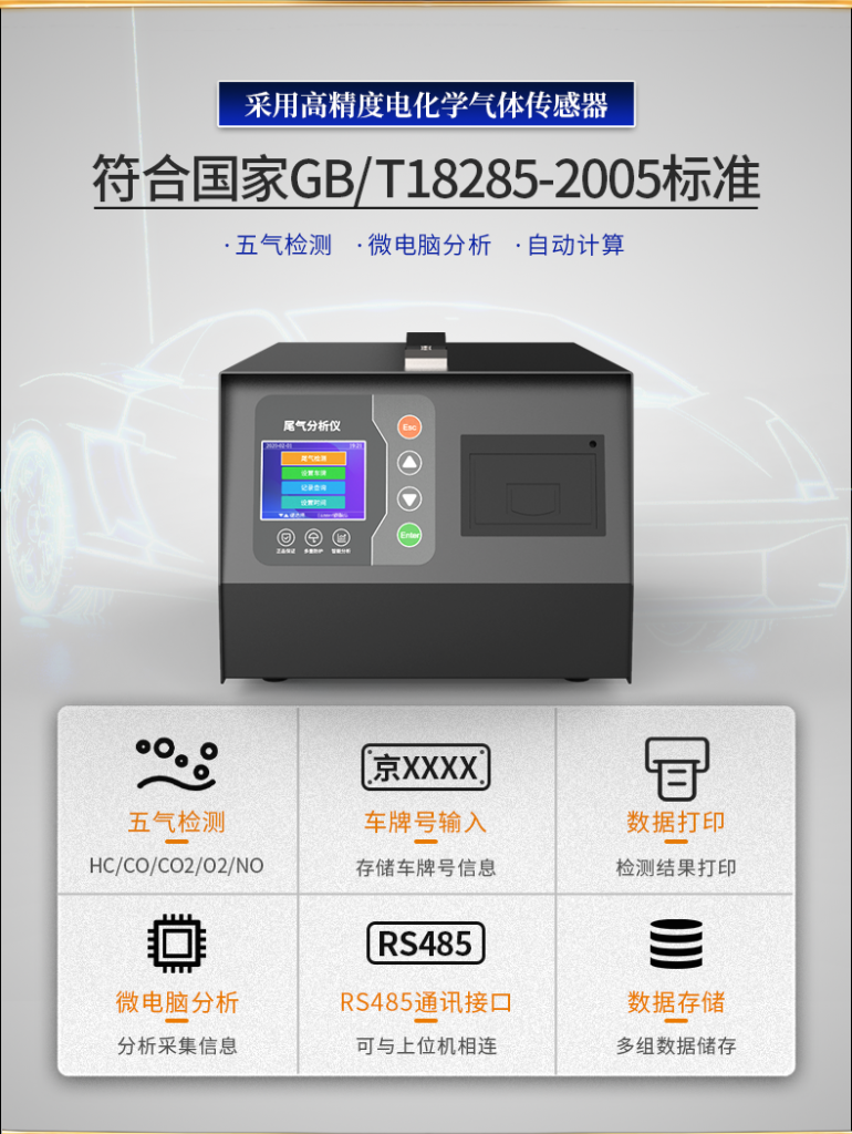 傳感器內(nèi)部帶有高精度放大、去噪聲處理、溫度補償處理,出廠前經(jīng)標準氣體標定處理,保證尾氣分析儀測得準確的氣體濃度信息。配有嵌入型熱敏打印機,打印尾氣分析數(shù)據(jù)。將設(shè)計融于人性,將便捷帶入生活。