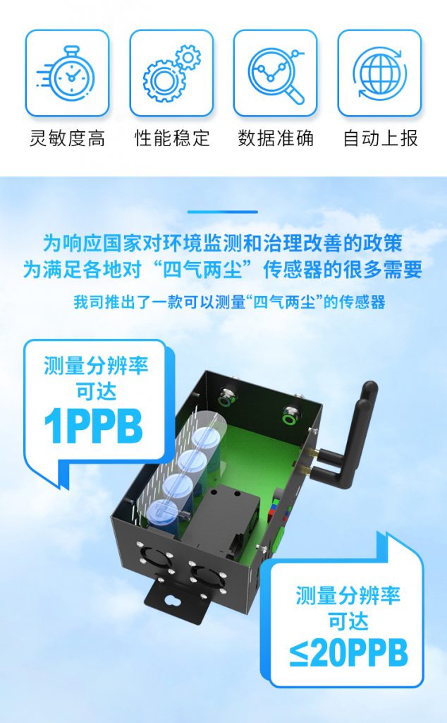 - 在線四氣兩塵傳感器是精訊暢通為滿足各地對(duì)四氣兩塵傳感器的很多需求,推出了一款可以測(cè)量四氣兩塵的傳感器。在線四氣兩塵傳感器可以實(shí)時(shí)測(cè)量大氣環(huán)境中的PM2.5、PM10、二氧化硫、氮氧化物、臭氧、一氧化碳的濃度。該空氣質(zhì)量傳感器廣泛適用于校園、森林、大氣、公園、機(jī)場(chǎng)、農(nóng)業(yè)等環(huán)境的空氣質(zhì)量監(jiān)測(cè)。
