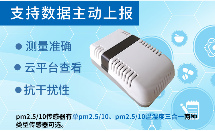 - 顆粒物傳感器是利用散射原理對(duì)空氣中粉塵顆粒進(jìn)行檢測(cè)的傳感器,具備體積小、檢測(cè)精度高、重復(fù)性好、一致性好、實(shí)時(shí)響應(yīng)。顆粒物傳感器具有可連續(xù)采集、抗干擾能力強(qiáng)、采用超靜音風(fēng)扇,傳感器出廠100%檢測(cè)和標(biāo)定等優(yōu)點(diǎn)。顆粒物傳感器支持PM2.5/10,溫濕度多合一檢測(cè)。
