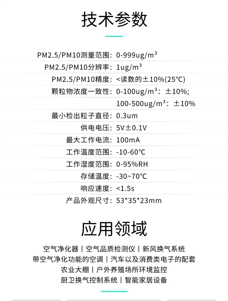 2.可同時(shí)輸出PM2.5、PM10、溫濕度、TVOC等數(shù)據(jù), 靈敏度高,數(shù)據(jù)穩(wěn)定。