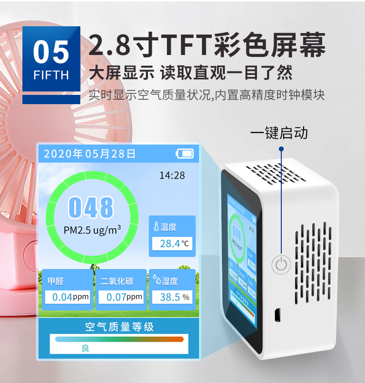 家居環(huán)境檢測儀可實(shí)時檢測空氣環(huán)境中PM數(shù)值、甲醛、溫濕度等一…