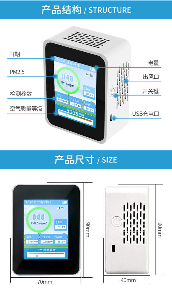 - 家居環(huán)境檢測儀實(shí)時監(jiān)測PM2.5/PM10.甲醛、溫濕度、有毒氣體TVOC、二氧化碳多項(xiàng)功能自由選擇搭配。家居環(huán)境檢測儀是高靈敏、 多參數(shù)小型環(huán)境監(jiān)測終端產(chǎn)品,空氣質(zhì)量檢測儀采用氣體高精度傳感器,具有體積小,重量輕、設(shè)計(jì)簡潔、安裝方便等特點(diǎn)。