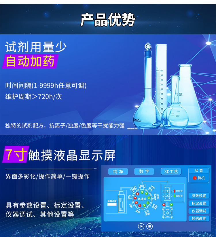 精訊暢通公司根據(jù)酶底物法檢測(cè)原理,開發(fā)了一款專門用于檢測(cè)水中大腸桿菌的儀器,這就是大腸桿菌檢測(cè)儀。這款儀器在檢測(cè)時(shí)能夠自動(dòng)添加試劑,而且試劑的使用量較少,維護(hù)的周期也相對(duì)較長(zhǎng)。它的界面設(shè)計(jì)得十分人性化,配備了7寸觸摸液晶顯示屏,色彩豐富,操作起來十分簡(jiǎn)便,一鍵就能完成。此外,它還能自動(dòng)清洗采樣管道、計(jì)量單位、消解反應(yīng)單位和測(cè)量單元的管線。因此,大腸桿菌在線分析儀在多個(gè)領(lǐng)域都得到了廣泛應(yīng)用,如醫(yī)院污水處理、飲用水水源地監(jiān)測(cè)、地表水檢測(cè)、水質(zhì)自動(dòng)監(jiān)測(cè)站以及污水處理廠出水口的環(huán)境污染源在線監(jiān)測(cè)等方面,都發(fā)揮了重要的作用。
