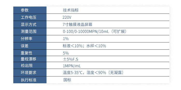測(cè)量范圍:0-100/0-10000MPN/10mL (可擴(kuò)展)